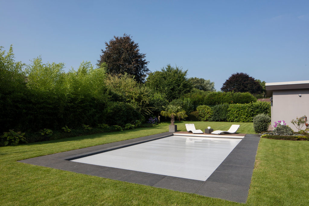 Entscheiden Sie sich für eine automatische Sicherheitsabdeckung für Ihr Schwimmbecken. Wir empfehlen Ihnen, ein robustes System zu wählen, das in eine Nische oder in den Pool selbst integriert ist.